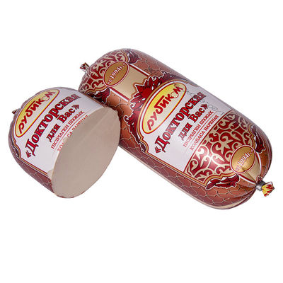 Farklı Renkler Mümkün Gümrük Logosu Flexography 5 Katmanlı Baskı Sosis Kaplamaları Sosisler için Gıda endüstrisinde yaygın olarak kullanılmaktadır.Uygulamalar:buharlı sosisler,buharlı sosisler, öğle yemeği eti, mortadella, peynir, Tereyağı, yoğunlaştırılmış süt ve evcil hayvan yiyecekleri vb.